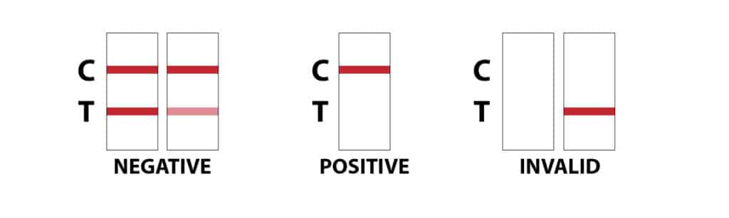 As mentioned above, there are two indicators printed on the cup, the Control region denotes by C and the test region indicated by T. If a colored line appears next to both C and T region, it shows the result is NEGATIVE.