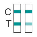 Two colored bands appear on the membrane. One band appears in the control region (C) and another band appears in the test region (T).